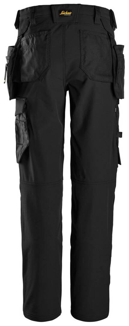 Stretchige Arbeitshose für Frauen. Vorgeformte Beine. Abnehmbare Holstertaschen aus Cordura®. Werkzeughalter aus Cordura®. Zollstocktasche mit Befestigung für ein Messer. Dehnbare Knieverstärkung aus Cordura®.