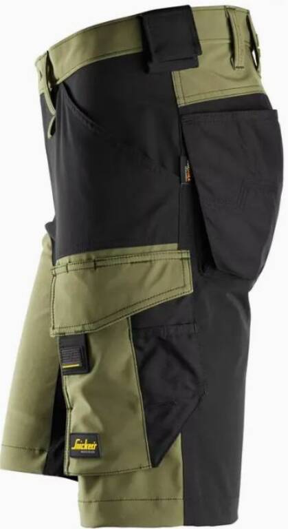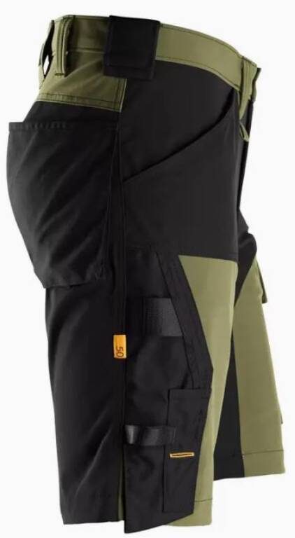 Stretch-Arbeitsshorts mit einer Kombination aus winddichten Abschnitten und Belüftungszonen. Verstärkungen aus Cordura®. 2 offene Gesässtaschen. Zollstocktasche mit Messerknopf. Cargotasche. Ausweishalter-Clip.