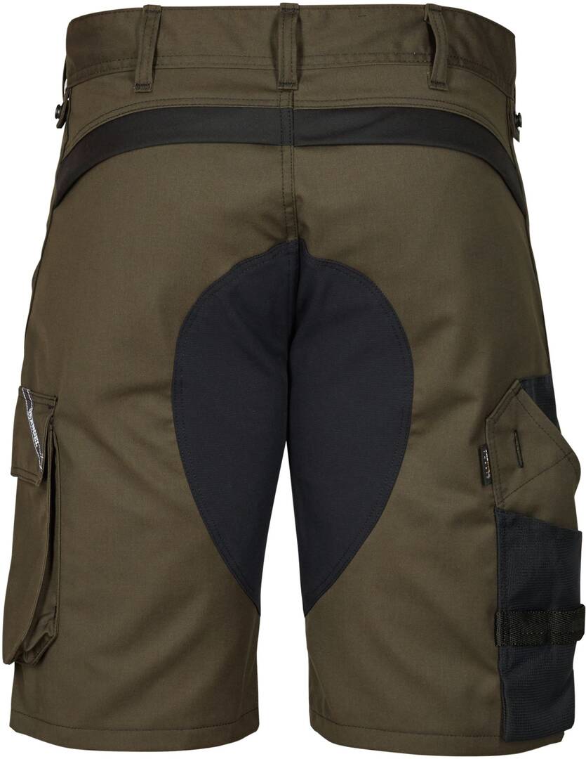 Modern Fit Stretch-Arbeitsshorts. Atmungsaktives Material im hinteren Bereich. Viele funktionelle Taschen. Verstärkte Zollstocktasche. Schlaufe mit D-Ring. Knöpfe zur einfachen Befestigung von Holstertaschen (9360-307).