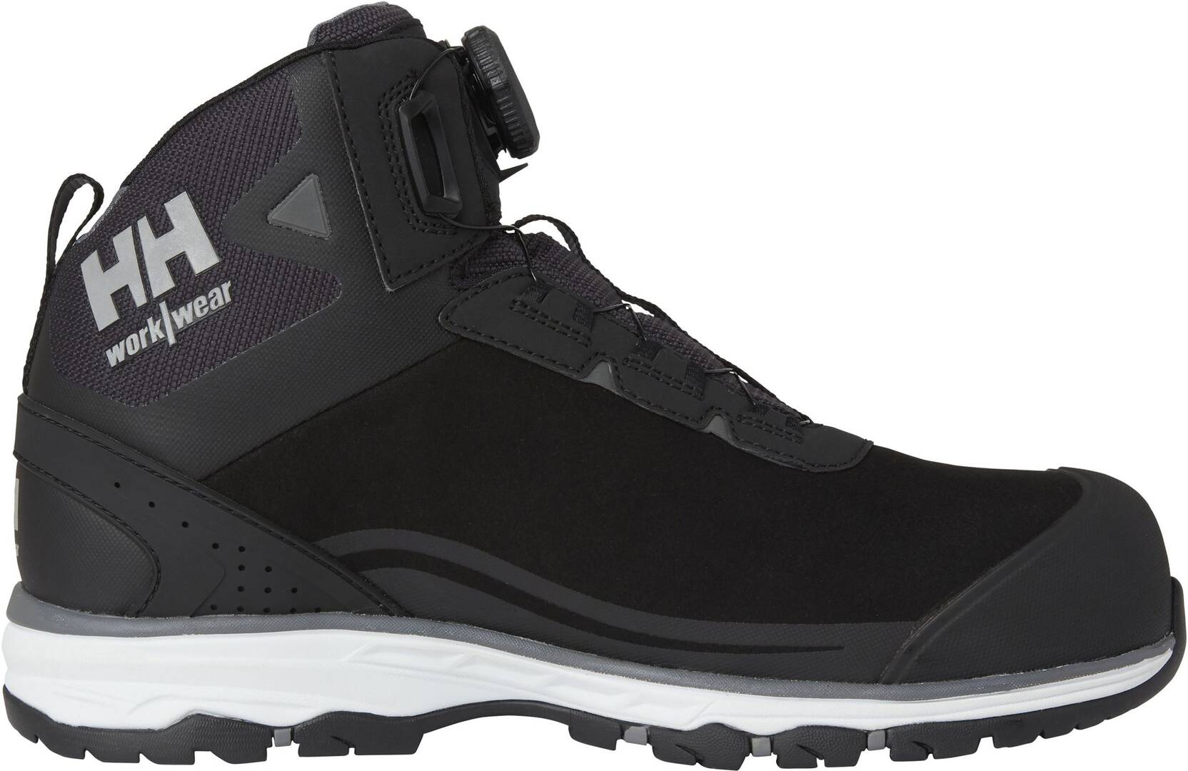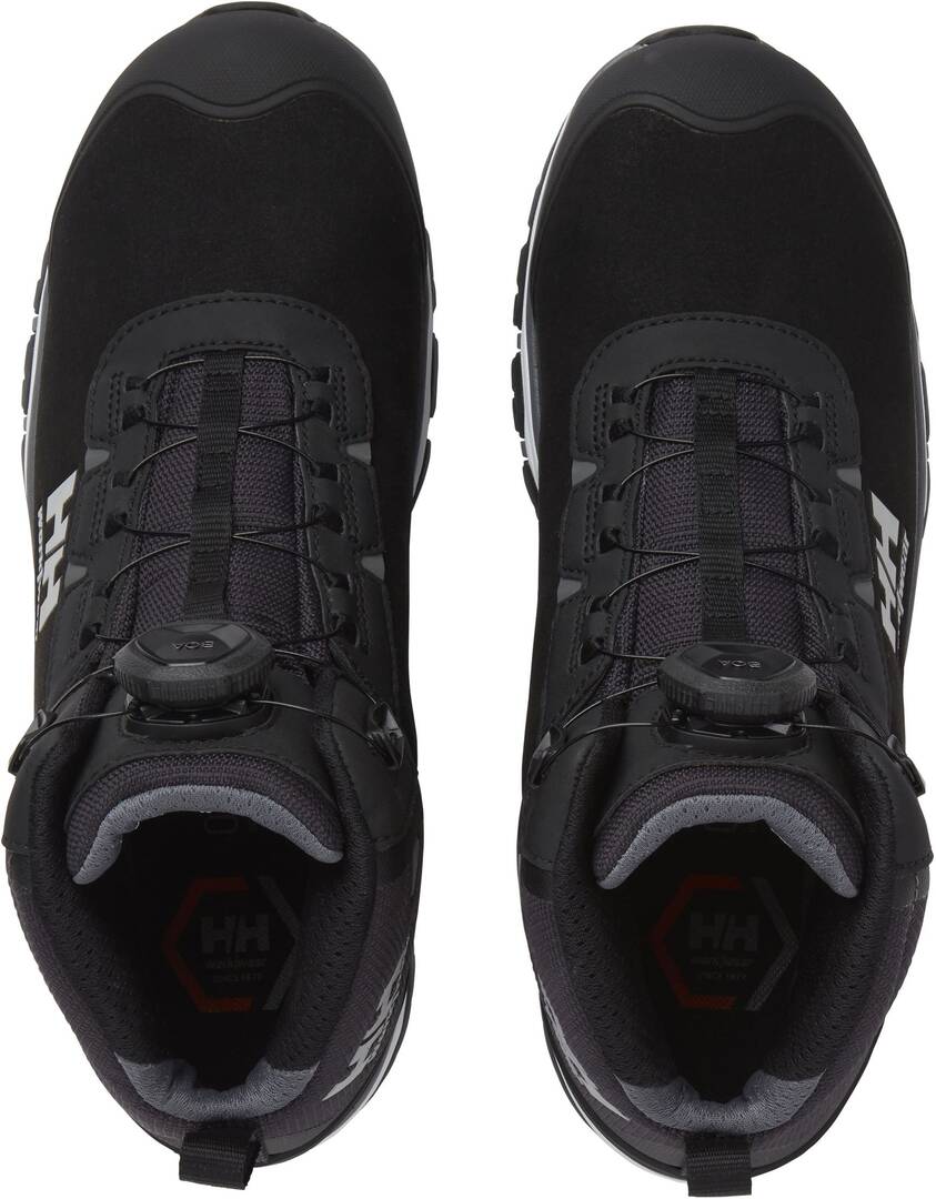Bequemer Sicherheitsschuh. Atmungsaktives Futter aus 50% recyceltem Material. Helly Tech® Wasserdichte Membran. Geformter TPU-Zehenschutz. Geformtes Fersen-Overlay. Reflektierende Details. BOA®-Fit-System - L6. Sicherheitskappe aus Komposit. Metallfreier Nageldurchtrittschutz.