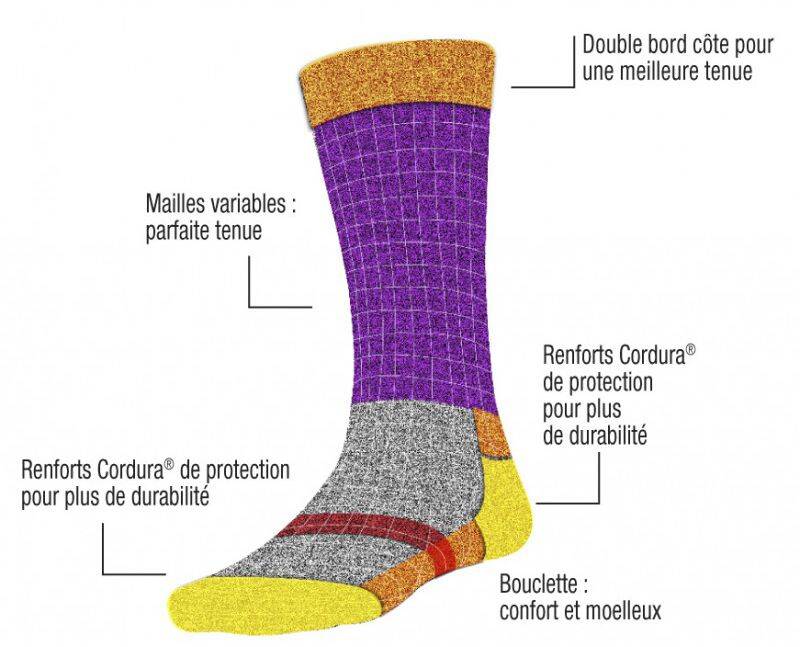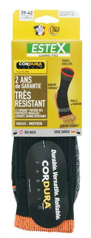 Chaussette security. Extrêmement résistante à l'usure. Idéale pour une utilisation avec des chaussures de sécurité. Maille variable élastique au niveau de la voûte plantaire pour un meilleur maintien.