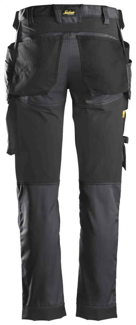 Pantalon de travail extensible avec poches holster. Jambes préformées. Extensible au niveau des genoux et de l'entrejambe. Poches en tissu Cordura®. Porte-outils.