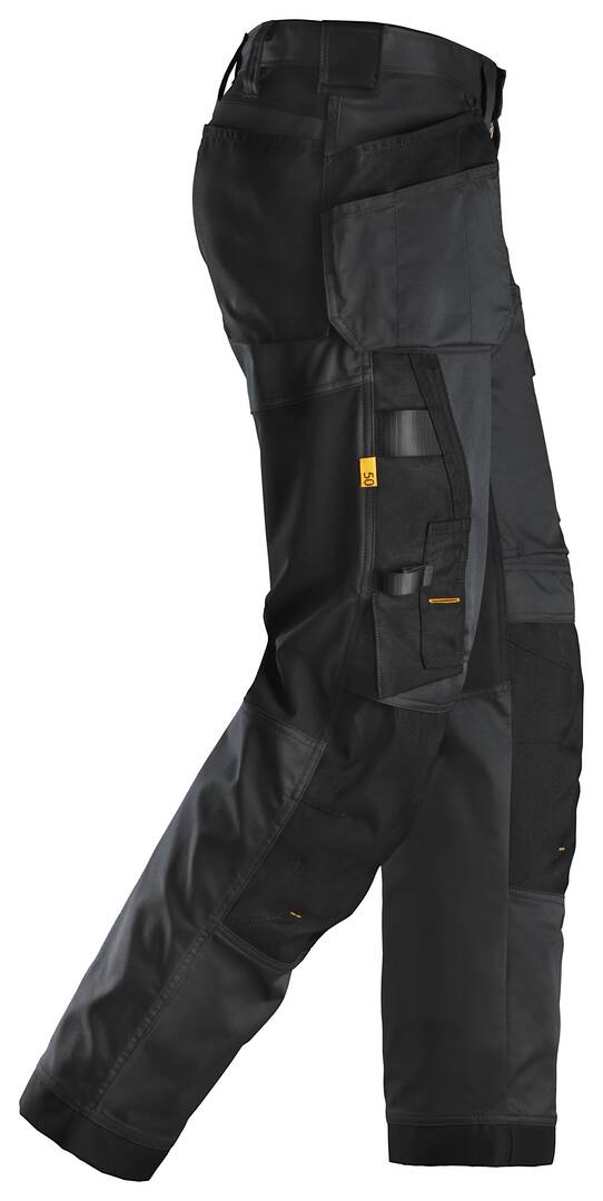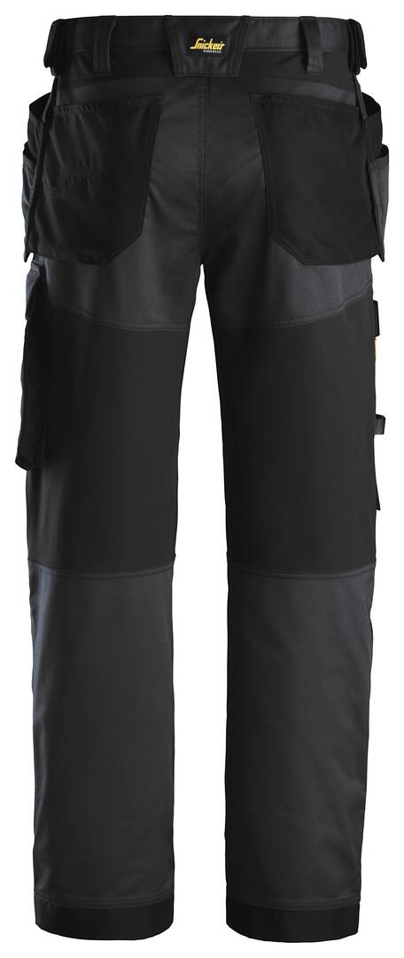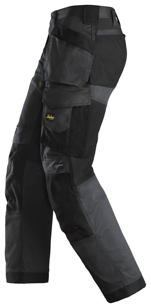 Pantalon de travail extensible avec poches holster, coupe large. Jambes préformées. Porte- mètre. Poches de rangement. Extensible au niveau des genoux. Porte-outils. Poche pour mètre avec attaches à couteau. Attaches à l’avant.