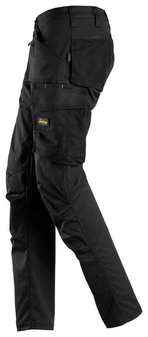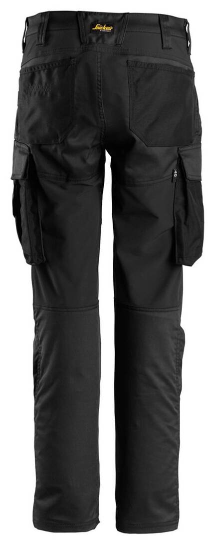 Pantalon de travail femme extensible. Genoux pré-pliés. Poche cargo classique avec soufflet. Attache pour badge d’identification. Ouverture de la poche de rangement pour couteau utilitaire des deux côtés. Boucles avant avec possibilité de porte-clés.