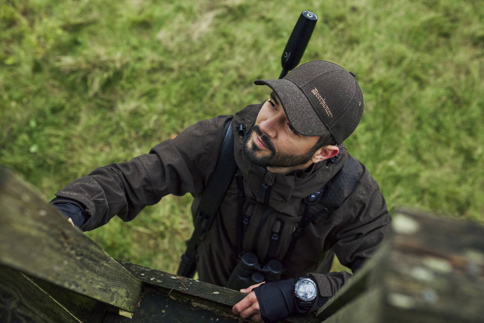 Casquette en Tissu souple. Réglable à l'arrière. Sangle sur le côté pour rameau trophée. Coupe-vent et respirant.