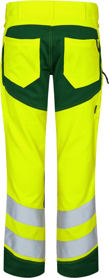 Pantalon de travail HV. Coupe moderne. Extensible. Nombreuses poches fonctionnelles. Poches genoux avec renfort en Cordura® et fermeture par bande velcro. Bandes réfléchissantes. Large ourlet permettant d'allonger le bas de 6cm.