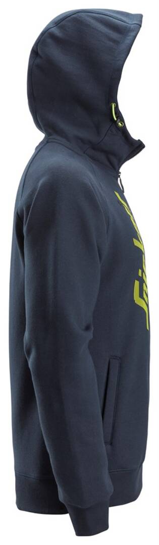 Sweat-shirt à capuche zippé Snickers Workwear confortable. Col haut. Avec deux poches doublées en maille. Fermeture zippée.Logo jaune fluo en relief.