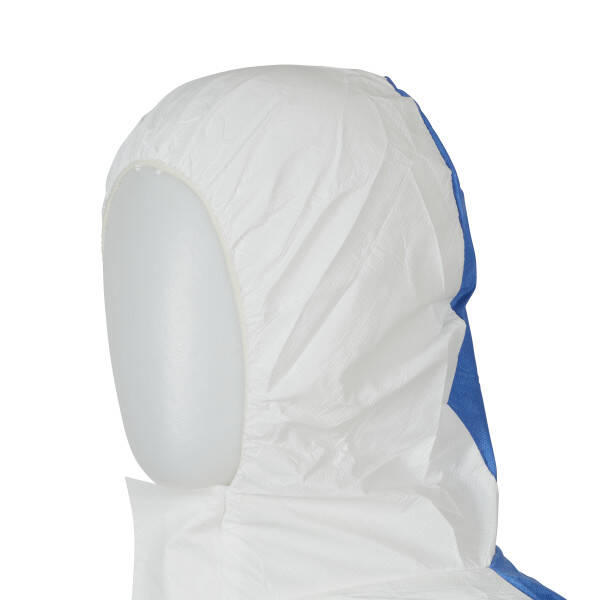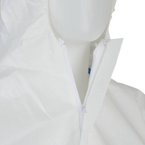 Combinaison de protection. Protection contre les éclaboussures de liquides et les particules dangereuses. A l'avant, matériau doux, non tissé et robuste recouvert d'un stratifié microporeux. Panneau dorsal en tissu multicouches pour une respirabilité optimale. Capuche spéciale à pans respirants. Fermeture à glissière double curseur avec rabat anti-tempête et ouvertures élastiques. Poignets jersey, taille et chevilles élastiqués. Antistatique.