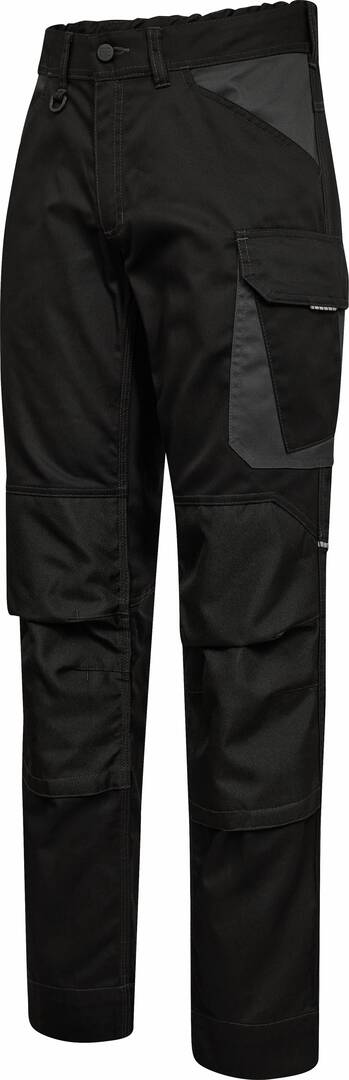 Coupe moderne pour plus de confort, élastique à la taille pour un ajustement optimal, genouillère ergonomique pour plus de confort, nombreuses poches fonctionnelles pour garder tout à portée de main, deux options de réglage des genouillères, poches renforcées aux genoux pour une durabilité accrue, sangle avec anneau en D pour badges, détails réfléchissants à l'avant et à l'arrière pour une visibilité et une sécurité accrue, revers large permettant d'allonger facilement la longueur de jambe de 6cm (4cm pour longueur courte.) Couleur: 2079 noir-gris, 7920 gris-noir.