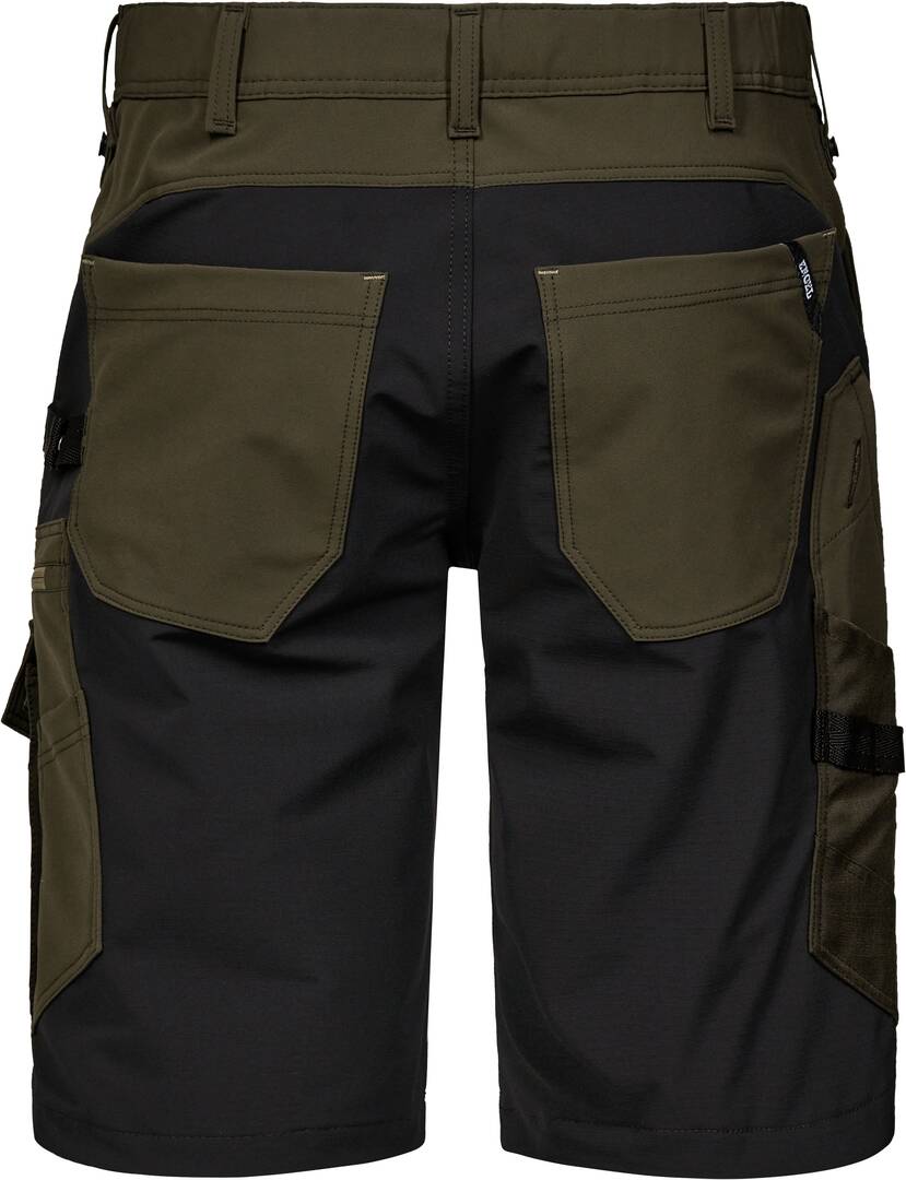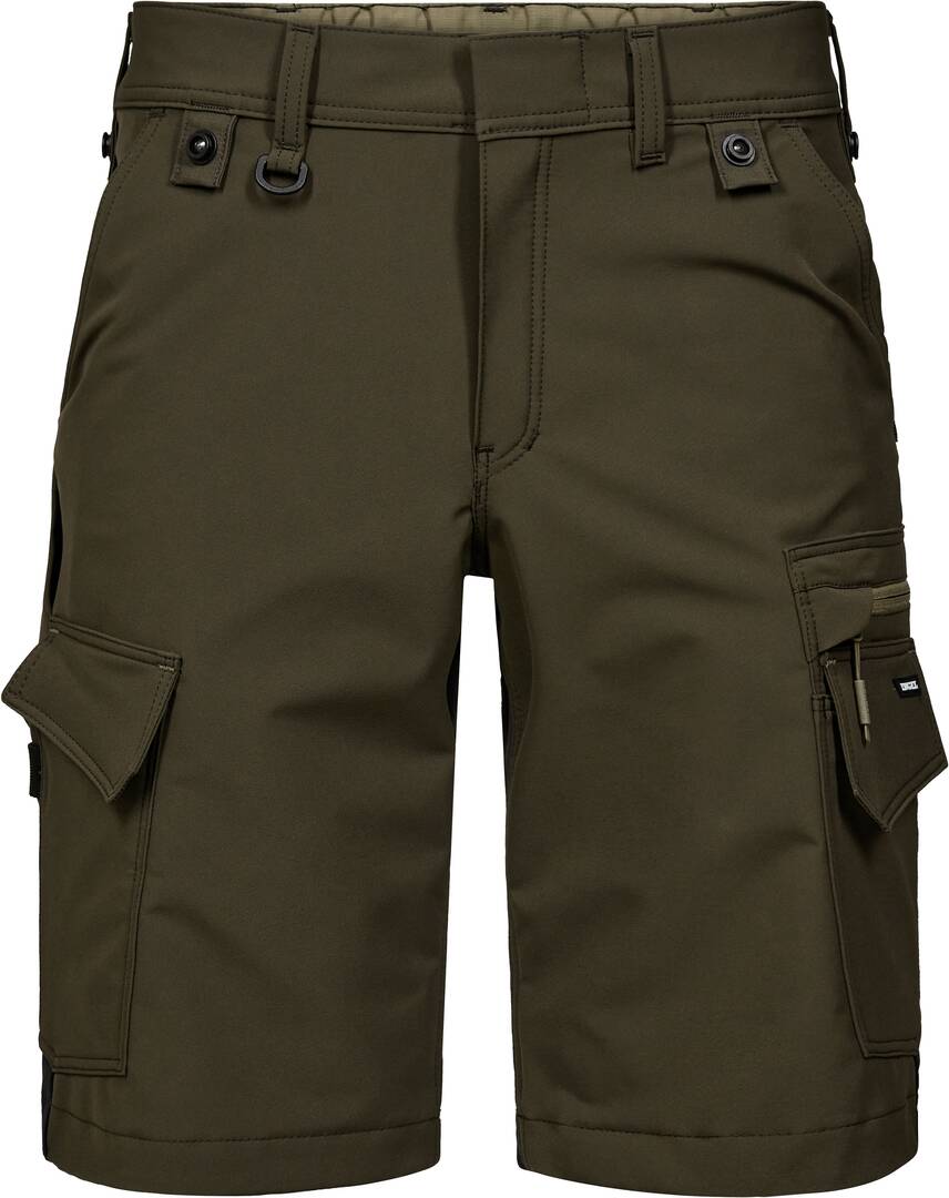 Short de travail. Tissu extensible confortable dans 4 directions. Fermeture à boutons dissimulée. Elastique au dos de la taille. Nombreuses poches fonctionnelles. Poche cuisse avec fermeture éclair. Poche cuisse gauche avec compartiment pour téléphone portable. Poche renforcée pour mètre pliant. Boucle à marteau. Boutons pour une fixation facile des poches pendantes.